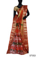 Bengali Sarees are very popular - Enjoy the festive season with Trendy Handloom Silk Matka Saree from Bengal. Beautifully designed in Orange base with all over floral motifs & contrast Brown and zari border.Wide Border and Pallu adorned with wonderful design motifs with colour thread and zari work mainly used for festival/ occasion purpose
