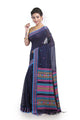 This Ethnic handloom bengali cotton saree in Orange colour . This drape is enhanced with designs woven throughout White, Black and Green threads in abstract and foliage motifs . The border features various motifs which are woven in zari thread works.