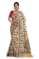 Indulge in the allure of a hand-painted silk saree, a masterpiece of artistry and luxury. Each saree is meticulously hand-painted by skilled artisans, creating unique and captivating designs. The smooth silk fabric adds a lustrous touch, enhancing the richness of the intricate paintings. From floral motifs to abstract patterns, every stroke of the brush tells a story. With its exquisite craftsmanship and elegant drape, the hand-painted silk saree is a wearable work of art that effortlessly elevates any occasion.