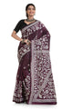 The kantha stitch is a traditional form of thread work in Bengal, India. It features intricate embroidery created with simple running stitches in contrasting colours on fabric. The stitches by hand are closely spaced, creating a quilted texture and giving the saree a unique look. Kantha stitch sarees are known for their versatility and are suitable for both casual and formal occasions, showcasing the rich cultural heritage of Indian embroidery.