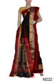 Made of silk and cotton, Black colour saree with wide Red & Golden border with zari work pallu and border- look even more beautiful. Cotton Silk Maheshwari Sari - It is also known for one of India’s finest fabric, and handloom weaving – The Maheshwari Sari. The graceful & sophisticated design is inspired by the local architecture and striped pallu. Once an exclusive privilege of the royalty has become an established choice of the woman. Free unstitch Blouse piece of this saree.