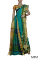 Made of silk and cotton, Green colour saree with wide Blue & Golden border on pallu with zari work - look even more beautiful. Maheshwari Silk-Cotton Saree - It is also known for one of India’s finest fabric, and handloom weaving – The Maheshwari Sari. The graceful & sophisticated design is inspired by the local architecture and striped pallu. Once an exclusive privilege of the royalty has become an established choice of the woman. Free unstitch Blouse piece of this saree.