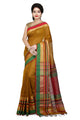 Made of silk and cotton, Black colour saree with wide Golden and Red border on pallu with zari work - look even more beautiful. Silk Cotton Maheshwari Saree - It is also known for one of India’s finest fabric, and handloom weaving – The Maheshwari Sari. The graceful & sophisticated design is inspired by the local architecture and striped pallu. Once an exclusive privilege of the royalty has become an established choice of the woman. Free unstitch Blouse piece of this saree.