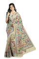 This is a vibrant sandal coloured jamdani saree. The textile of this product is silk cotton. This saree is designed with intricate patterns with shaded threads of red, green and yellow. The border and pallu features a tapestry pattern and the body is weaved with floral motifs and butis. The shading of this saree makes it perfect for any age group and for any day time events.