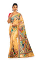 Made of silk and cotton, Black colour saree with Red and Golden border with zari work pallu and border- look even more beautiful. It is also known for one of India’s finest fabric, and handloom weaving Handloom Maheshwari Women's Saree. The graceful & sophisticated design is inspired by the local architecture and striped pallu. Once an exclusive privilege of the royalty has become an established choice of the woman. Free unstitch Blouse piece of this saree.